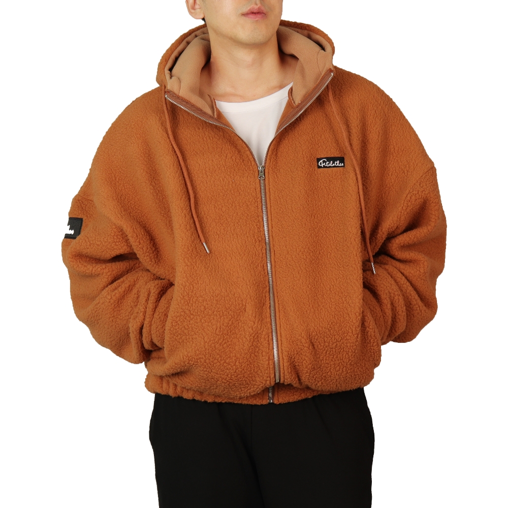 후리스 후드집업은 밴드로 제작된 소매와 밑단이 편하게 제작되어 큰 폼과 통을 잘 잡아줘 흘러내리지 않는다. 터틀넥의 디자인으로 겨울철 목까지 따듯하게 착용할 수 있고 보온이 잘되며 패치자수의 통일감으로 심플하고 편하게 착용 가능하다고 업체 측은 설명했다.