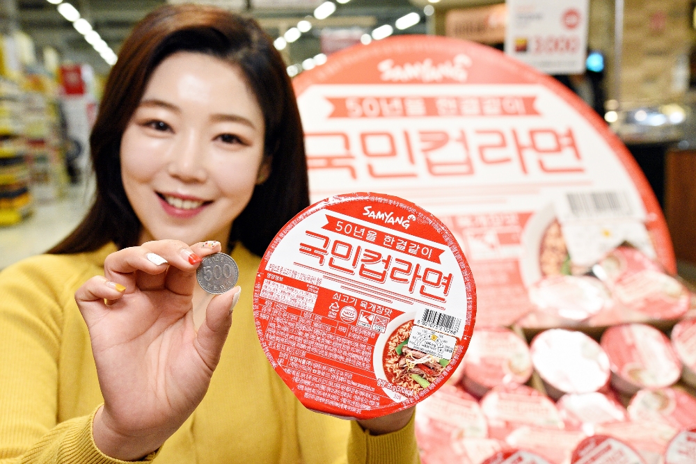 이번 홈플러스는 개당 400원짜리 국민라면, 국민짜장에 이어 삼양식품과 다시 한 번 손잡고 개당 500원 수준의 ‘국민컵라면’을 출시했다.