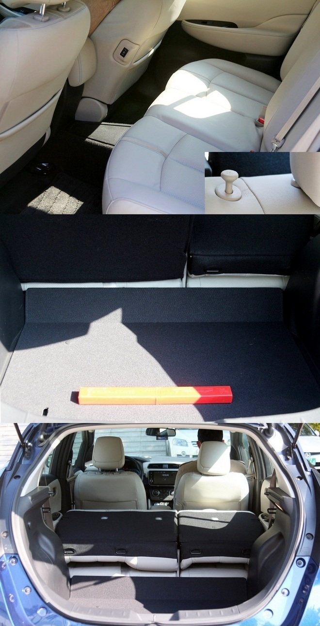 내비게이션은 음성으로 조작할 수 있어 운전 편의성이 탁월하고, 어라운드뷰가 차량 주변을 모니터에 투영해 주차와 안전사고 예방을 각각 돕는다. 기어 변속 표시 위에는 스마트폰 거치대와 충전기가 있다. 리프의 주차 브레이크는 기어노브 중앙 ‘P’를 누르면 된다. 종전에 있던 버튼식 주차브레아크 버튼은 에코 버튼으로 변했다.