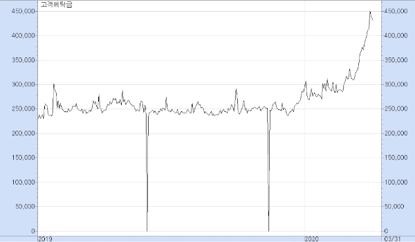 이미지 확대보기◇개인투자자 주식투자 급증….투자금예탁금 43조4600억 원 급증