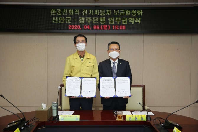 이미지 확대보기협약 내용은 지난해 12월 신안군의회 김기만 부의장 발의로 제정된 “신안군 환경친화적 자동차의 보급 및 이용 활성화를 위한 조례”를 근거로 신안군민이 전기자동차를 구매시 보조금 외에 발생하는 자부담금 이자를 지원하는 내용이 주요 골자다.
