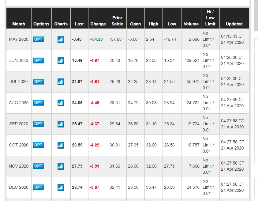 WTI Crude Oil (Nymex) USD/bbl. -3.43 +34.20 +90.88% May 2020 5:13 AM