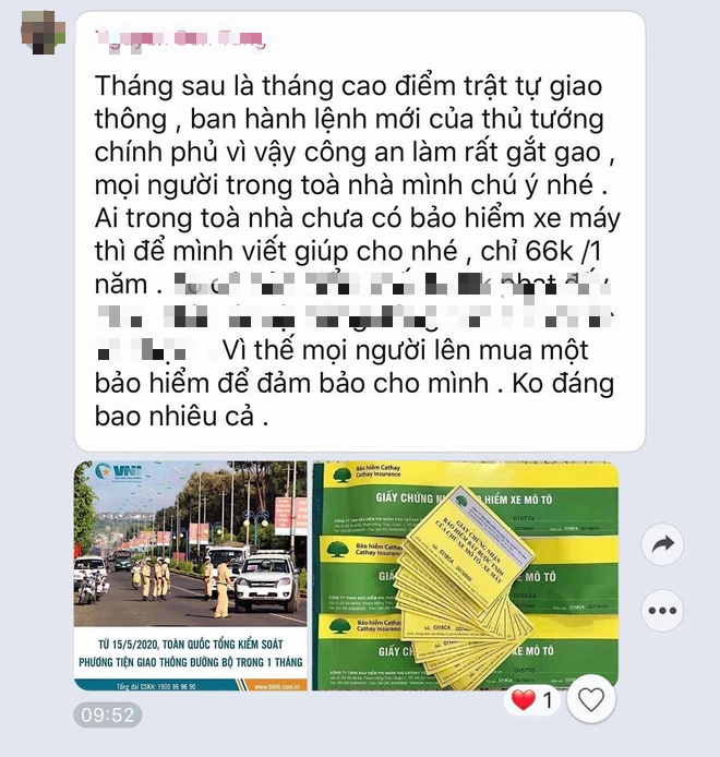 현재 SNS에서 홍보하는 오토바이 보험 상품의 보험료는 연간 4만~6만 동(2000~3000원)이다. 어떤 곳은 2만 동(약 1000원)에도 판매를 하고 있다. 베트남 재무부는 오토바이 보험 관련 규정에서, 부가가치세를 제외하고 50cc 이하는 연간 5만5000동, 50cc 이상은 연간 6만 동으로 정해놓고 있다. 이 규정에 따르면, 필수 오토바이 보험료는 연간 6만6000동으로, 더 낮출 수 없다.