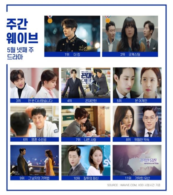 이미지 확대보기‘더 킹: 영원의 군주(이하 더 킹)’과 ‘굿 캐스팅’, ‘한 번 다녀왔습니다’가 지난주에 이어 이번주 1, 2, 3위를 지켰다.