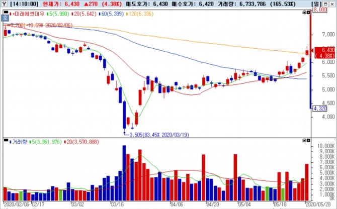 미래에셋대우는 전일 공정위가 박현주 회장에 대한 검찰 고발은 하지 않기로 함에 따라 지배구조에 대한 불확실성이 제거되면서 증권업종내에서 가장 상승폭이 큰 편이다.