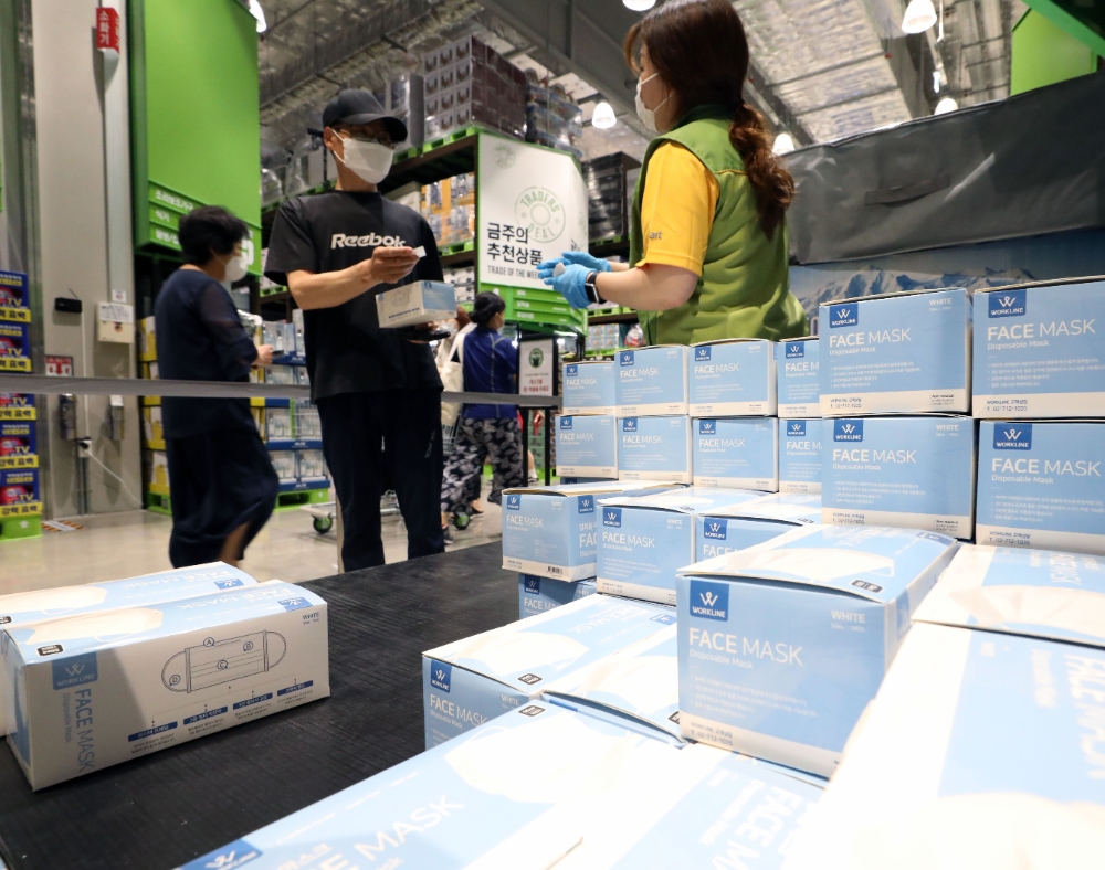 대형 유통업체들도 여름철을 맞아 KF마스크보다 숨쉬기가 편한 일회용 마스크 판매에 나서고 있고 수요가 급증하자 판매 물량을 확대하는 방안을 검토 중이다.