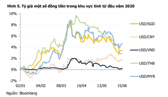 MBS증권 보고서에서는, 올해 초부터 미국 달러 대비 동남아지역 통화가치가 1~5%로 낮아졌지만, 베트남은 인플레이션을 효과적으로 관리하고 있는 데다 외환 보유고가 풍부해 동/달러 가치의 변동폭이 크지 않은 것으로 분석했다.