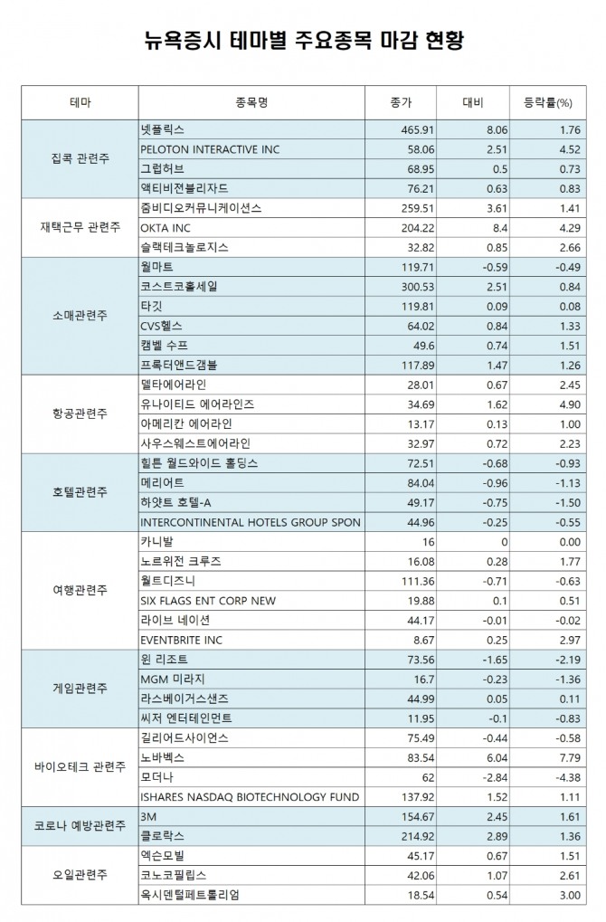 넷플릭스 465.91 (1.76%), PELOTON INTERACTIVE INC 58.06 (4.52%), 그럽허브 68.95 (0.73%), 액티비젼블리자드 76.21 (0.83%),