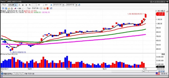 테슬라 일간차트. (7월 2일) 자료=이베스트투자증권 HTS