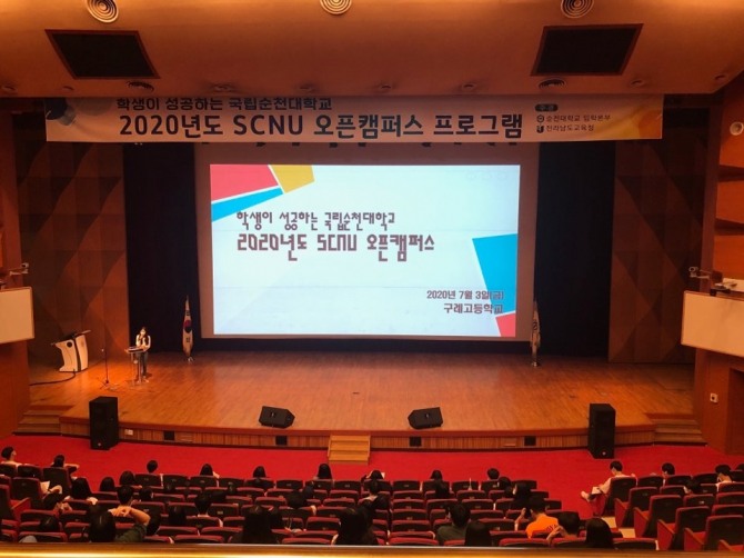 순천대학교(총장 고영진)가 지난 3일 2020년도 ‘SCNU 오픈캠퍼스’ 프로그램을 진행하고 구례고등학교 3학년 학생 90명을 캠퍼스로 초청해 전공 탐색 및 학과 체험의 기회를 제공했다고 9일 밝혔다. / 순천대학교=제공이미지 확대보기