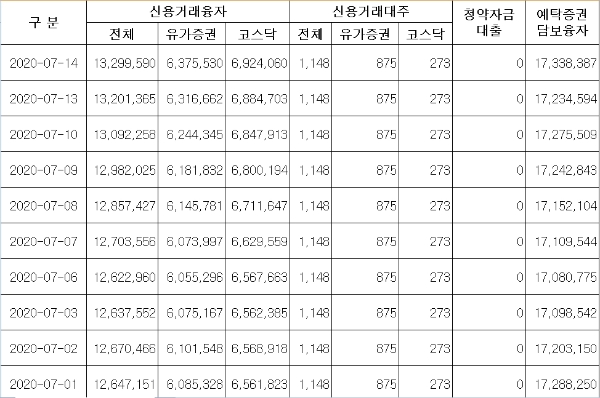 신용거래융자 13조2995억 원으로 최고치 경신