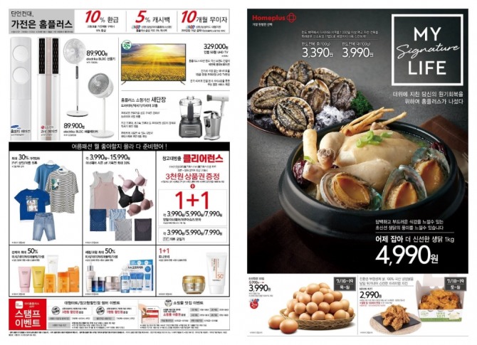 먼저 이 회사 전단은 23년 만에 스토리 중심의 잡지 ‘마이 시그니처 라이프’로 개편됐다. 기존 전단이 A2 크기의 지면에 할인 행사 품목과 가격을 빼곡히 좌판식으로 나열하는 형태였다면 새 전단(A3 크기의 책자)은 시기별 수요가 높은 상품 정보를 직관적으로 파악할 수 있도록 지면 배치‧디자인‧색감이 수정됐다.