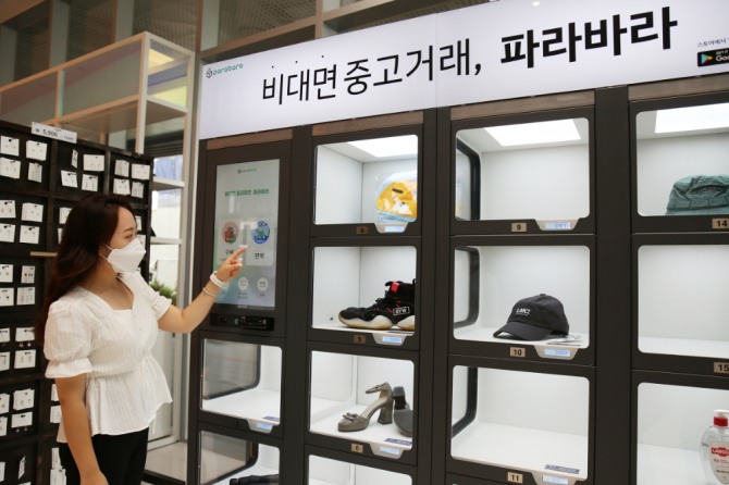 파라바라는 연세대학교 창업팀에서 개발한 아이디어 상품이다. AK플라자외에 CGV에서도 만나볼 수 있다. 파라바라에 물건을 내놓으려면 자판기 투명 사물함에 휴대폰 번호‧상품 설명‧원하는 가격을 입력한 뒤 판매할 물건을 넣어두면 된다.