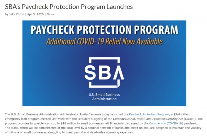 미 연방 중소기업청(SBA)의 급여보호프로그램(PPP) 코너. 사진=SBA