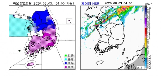 다음은 기상청 속보 2020년 8월 3일 4시 10분