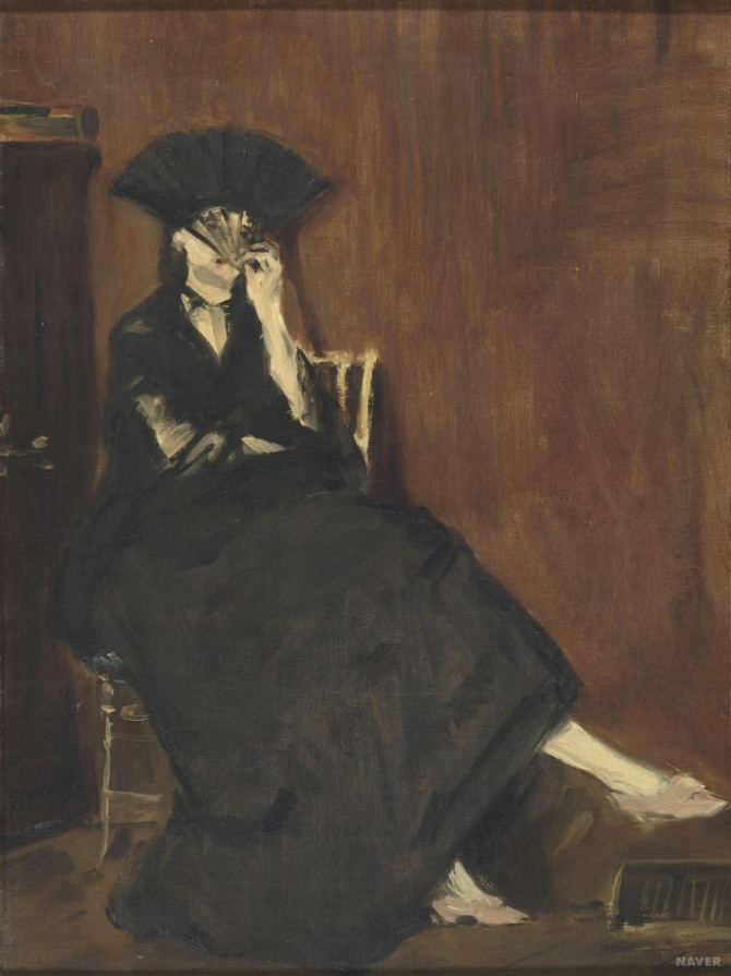 그림 속 여인은 인상파 화가 베르트 모리조(Berthe Morisot, 1841~1895)인데, 인상주의의 아버지 에두아르 마네(Edouard Manet, 1832~1883)가 직접 그린 것이다.