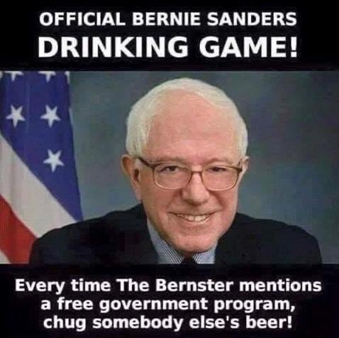 이 짤은 샌더스가 정부의 무료 지원 프로그램을 얘기할 때마다 다른 사람 맥주를 마셔도 좋다는 술먹기 게임에 비유한 것으로 샌더스 의원이 그만큼 정부 보조 사업을 자주 언급했다는 비판이다.