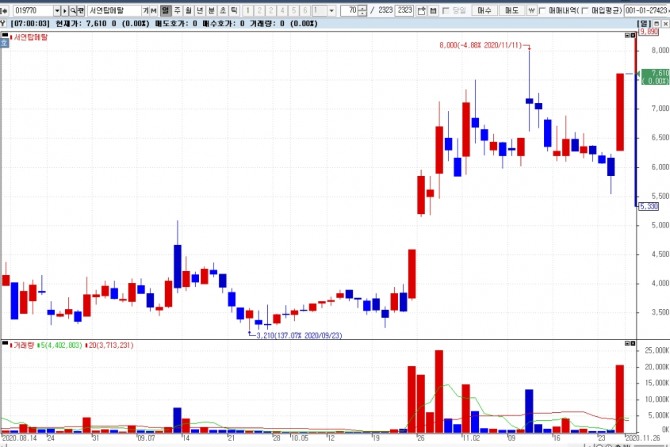 16위 비덴트 69.35%, 10650원 (4.41%), 17위 이트론 67.21%, 314원 (14.6%), 18위 흥구석유 64.22%, 6860원 (5.21%), 19위 피플바이오 63.19%, 53600원 (0.37%), 20위 IBKS제10호스팩 60.29%, 5020원 (22.44%)