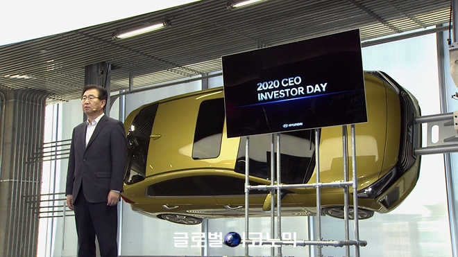 이원희 현대자동차 사장이 10일 온라인으로 열린 ‘CEO 인베스터 데이’에서 전기차, UAM(도심 항공 모빌리티), 자율주행, 연료전지 등 핵심 미래사업 전략과 혁신 모빌리티 솔루션 제공과 수소 생태계 이니셔티브를 위한 새로운 '2025 전략'을 발표하고 있다. 사진=현대차그룹