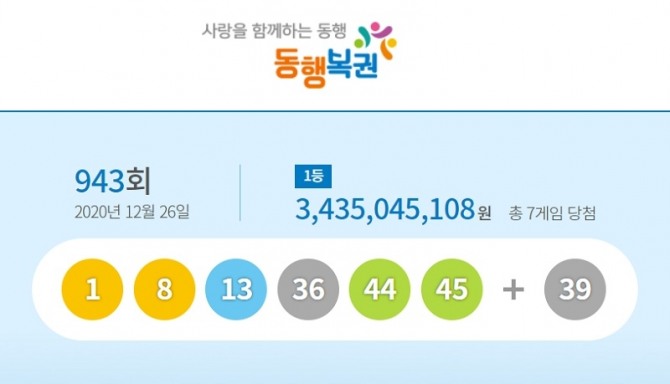 1등 당첨자 7명, 당첨금 각 34억3505만원