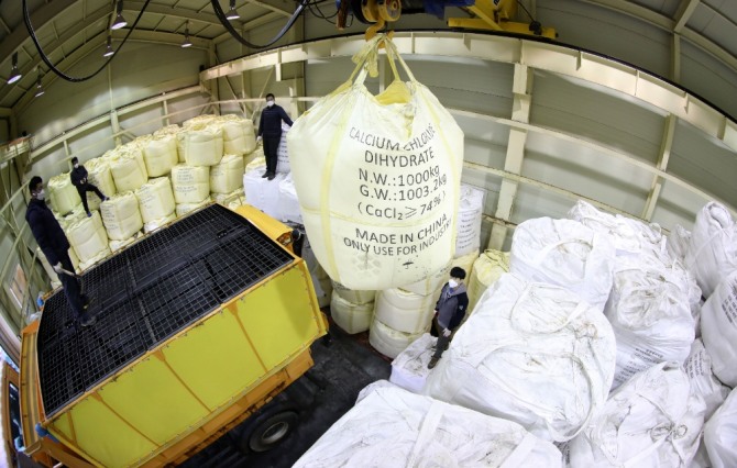 이미지 확대보기이날 오후 8시께 각 포털사이트에는 '염화칼슘'이 실시간 검색어 상위권에 이름을 올렸다. 염화칼슘은 염소화 칼슘이 반응해 만들어진 이온성 화합물로 눈 오는 날 제설작업에 유용하게 쓰인다.