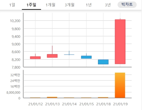 코스피가 3090선으로 급등하는 가운데 주식시장에서 상한가가 나타나고 있다.