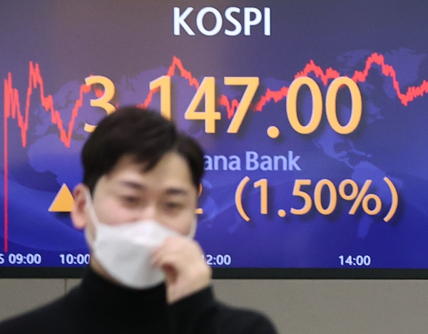 이날 한국거래소에 따르면 코스피는 전거래일(10일) 대비 1.50%(46.42포인트) 오른 3147.00에거래를 마쳤다.