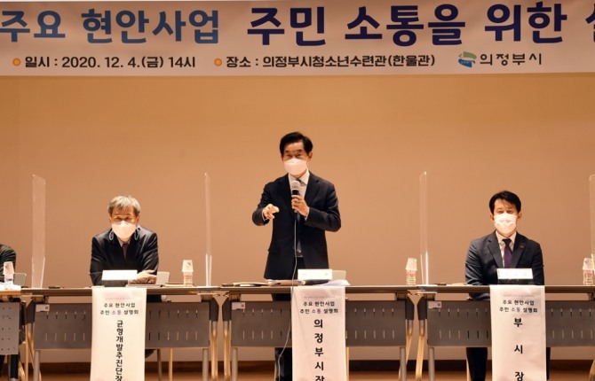 안병용 시장(가운데)이 주요 현안사업 주민 소통 위한 설명회를 이어가고 있다(의정부시제공)