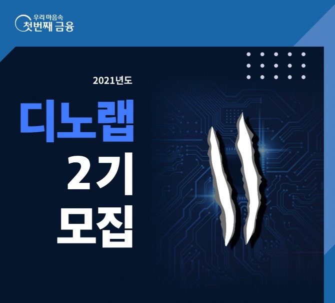 이미지 확대보기우리금융은 스타트업(Start-up) 협력 프로그램인 ‘디노랩(Digital Innovation Lab)’에 참여할 통합 2기 기업을 모집한다고 17일 밝혔다.