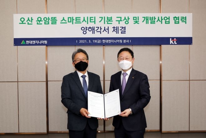이미지 확대보기현대엔지니어링은 KT와 최근 ‘오산 운암뜰 스마트시티 개발 협력’에 대한 양해각서(MOU)’를 체결했다고 21일 밝혔다.