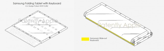 이미지 확대보기21일(현지시간) 애플 특허전문 사이트 패이턴틀리 애플(Patentlyapple)은 삼성전자가 슬라이드 아웃 키보드가 적용된 더블 폴더블 태블릿(double foldable table) 디자인 특허를 받았다고 보도했다.