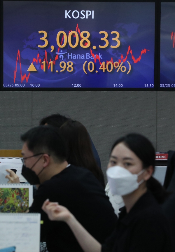 이미지 확대보기이날 한국거래소에 따르면 코스피는 전날 대비 0.40%(11.98포인트) 오른 3008.33에 거래를 마쳤다.