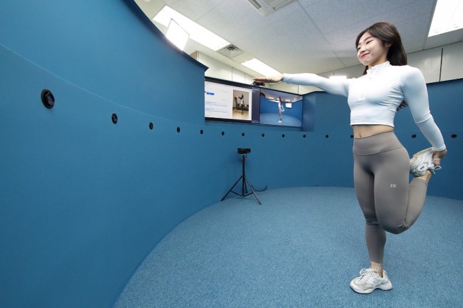 우선 KT는 서울 강북구 미아, 경기도 부천·하남 지사에 전용 스튜디오를 구축한다. 이 스튜디오에서는 XR 매트릭스뷰 기술을 활용해 운동을 하는 모습이나 특정 자세는 210도 각도에서 입체적으로 전달할 수 있다. 영상에는 3차원 관절 정보가 추가로 입혀져 비대면 환경에서 운동을 하는 자세를 자세를 기존보다 더 섬세하제 전달이 가능하다.