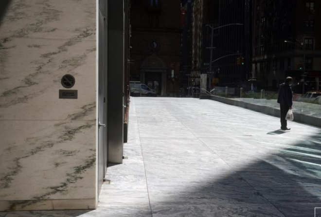 29일 미국 뉴욕시 맨해튼 자치구에서 한 사람이 아르케고스 캐피탈이 입주해 있는 것으로 알려진 건물인 8887번가 밖에 서 있다. 사진=로이터이미지 확대보기