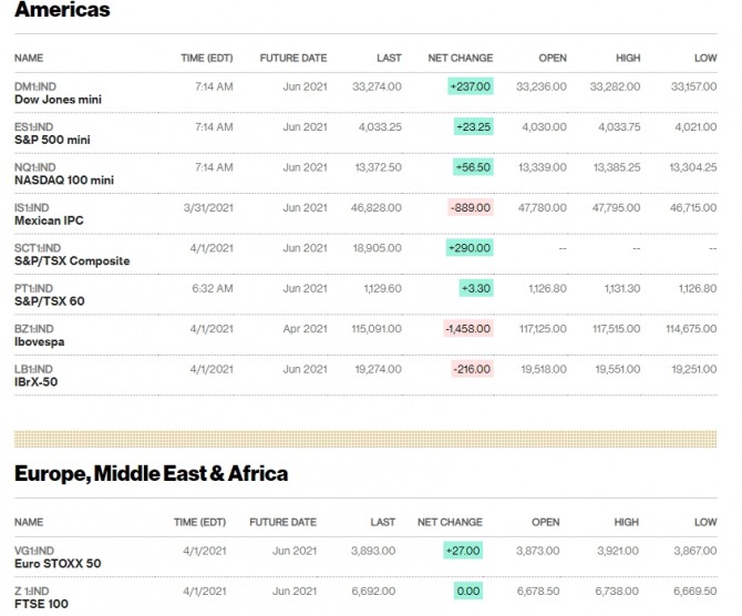 미국 뉴욕증시 나스닥 다우지수 주가지수 선물 시세