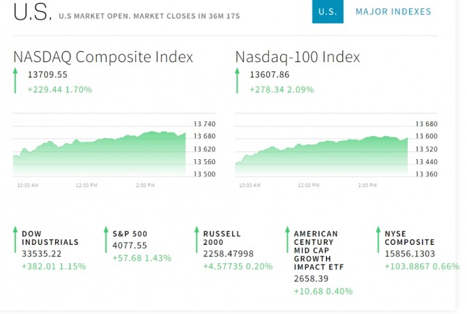 이날 뉴욕증시는 지난 주말 발표된 미국의 고용지표와 이날 발표된 경제 지표 등을 주시했다. 미국의 3월 비농업 부문 신규 고용은 91만6000명 명으로 집계돼 월스트리트저널이 집계한 이코노미스트들의 예상치인 67만5000 명을 크게 웃돌았다. 3월 신규 고용은 지난해 8월 이후 최대이다. 그 결과 3월 실업률도 6.0%로 6.2%에서 하락했다. 고용이 3월 들어 크게 증가하면서 코로나19 팬데믹에 따른 우려를 크게 덜어냈다. 뉴욕증시가 지난 주말 휴장하면서 주식시장은 고용 보고서를 이날 뒤늦게 반영한 모습이다.