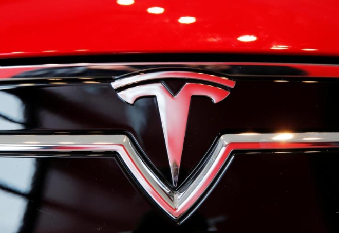 미국 뉴욕의 한 테슬라 대리점에 전시된 모델S에 테슬라 로고가 찍혀 있다.   사진=로이터이미지 확대보기