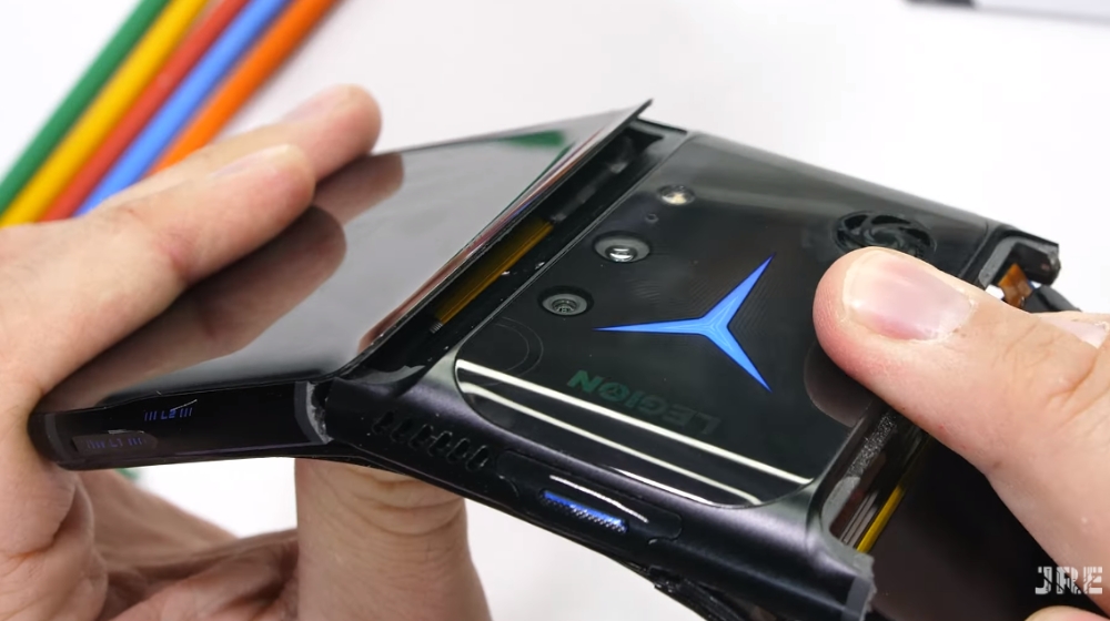 레노버가 심혈을 기울인 제품이지만 한 유튜버의 내구성 테스트 영상에서 ‘레기온폰 듀얼2’에 약간의 압력을 가하자 ‘비스킷’처럼 반으로 쪼개지는 모습이 공개됐다.