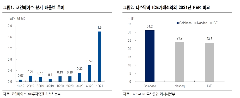 이미지 확대보기NH투자증권은 14일 코인베이스의 예상 시가총액을 1000억 달러로 전망했다.