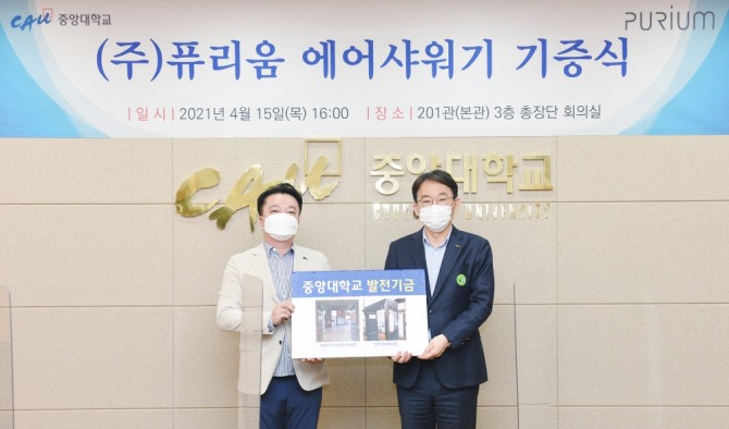 박상규 중앙대 총장은 “코로나19로 어려움이 많은 중요한 시기에 최신 에어샤워 기기를 기증해 준 덕분에 교내 방역에 굉장히 큰 도움이 됐다. ‘모두가 함께 성장하는 중앙대학교’와 마찬가지로 퓨리움도 계속해서 성장해 나가길 모든 중앙대 구성원들을 대표해 응원하겠다”라고 화답했다.
