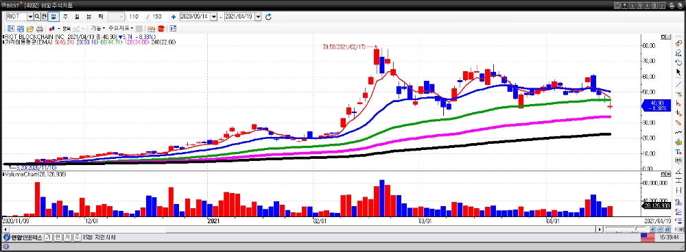 이미지 확대보기19일(현지 시각) 뉴욕 주식시장에서 비트코인 채굴 전문기업 라이엇 블록체인과 마라톤 디지털 홀딩스 등이 9% 가깝게 주저앉았다.
