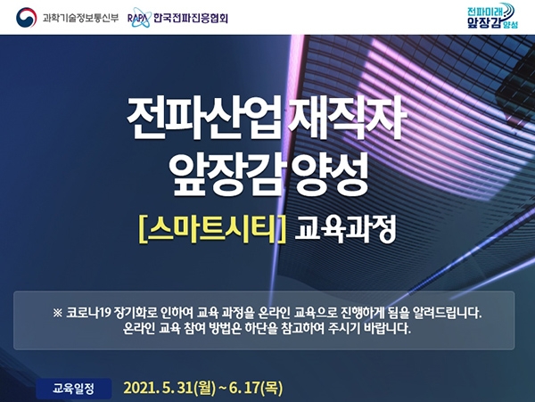 이미지 확대보기이번 '전파산업 스마트팜' 교육은 지난 3월~4월에 실시된 ‘스마트제조’에 이어 2번째로 진행되는 교육으로 ▲오프닝 세미나 ▲기술과 산업 ▲관리와 개발 ▲전파측정실습 ▲특성화 실습 ▲현장 견학 ▲온라인 우수과정 등 7개의 교육과정으로 구성돼 있다.