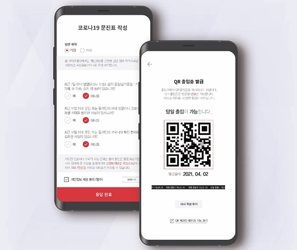 병원 및 의료 기관 관리자는 생성된 QR 출입증을 관리자용 앱으로 스캔해 확인할 수 있으며, 문진 결과는 병원 모바일 데이터베이스(DB) 등에 자동 저장돼 이력 관리를 할 수 있다.