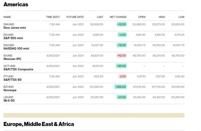 뉴욕증시 상장 기업들이 1분기 어닝 시즌을 맞아 기대 이상의 양호한 실적을 내놓고 있다. 스탠더드앤드푸어스(S&P) 500대 기업 중 현재까지 1분기 실적을 발표한 100여개사가 대체로 '어닝 서프라이즈'를 신고했다. 그 결과 뉴욕증시에서는 다우존스30 산업평균지수가 61.92포인트(0.18%) 내린 33,981.57에 마감됐다. S&P 500 지수(종가 4,187.62)와 나스닥 지수는 사상 최고치를 기록했다. 프록터앤드갬블(P&G), 월마트, 코카콜라는 하락했다.