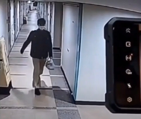 강남의 한 오피스텔에서 신원 미상의 남성이 잘못 배달된 쿠팡이츠 음식을 들고 사라지는 CCTV 영상이 공개돼 논란이 일었다. 사진=온라인커뮤니티
