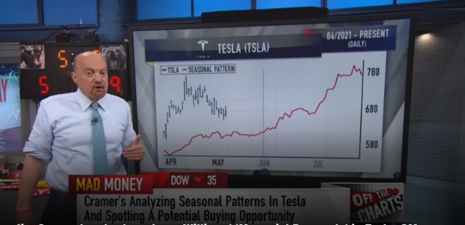 이미지 확대보기크레이머가 진행하는 ‘매드머니’에서 "이 여름철 주식을 3주 후인 메모리얼 데이 주말 거래일 전에 매수했다가 1일~15일 후에 매도하는 경향이 있다"고 말했다.