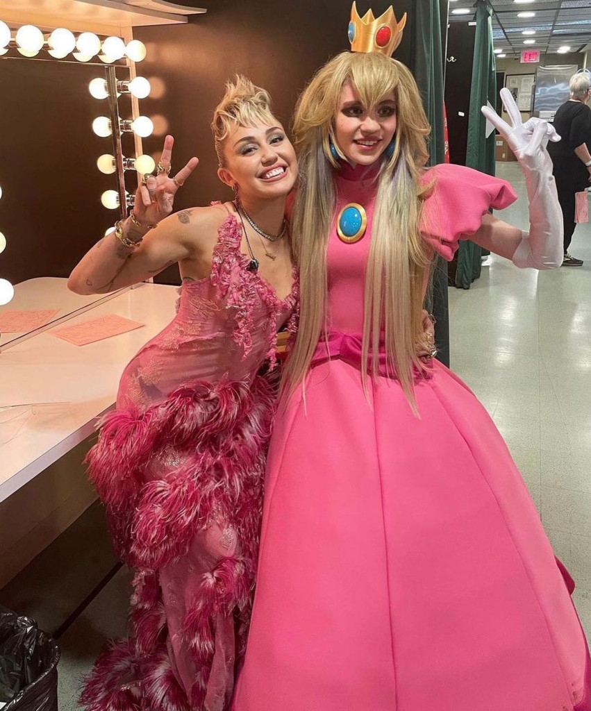 버라이어티 등 외신에 따르면 그라임스는 11일 자신의 인스타그램에 피치공주 의상을 입고 음악 손님으로 출연했던 가수 마일리 사이러스와 함께 무대 뒤에서 촬영한 사진을 올렸다.