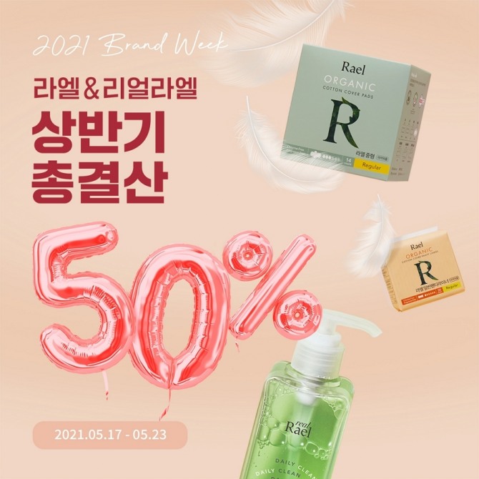 이번 행사에서는 유기농 순면 커버 생리대와 탐폰, 클렌저, 미스트 등 클린 뷰티 브랜드 리얼라엘 제품을 정상가 대비 최대 50% 저렴한 금액에 만날 수 있다.
