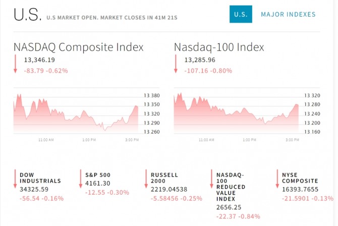 이미지 확대보기18일 뉴욕증권거래소에서 다우지수와 스탠더드앤드푸어스(S&P)500지수 그리고 기술주의 나스닥지수 모두 하락 출발했다. 지난 일주일 동안 나스닥지수는 2.3% 하락했다. 다우지수와 S&P500지수는 1.1%, 1.4% 씩 떨어졌다.