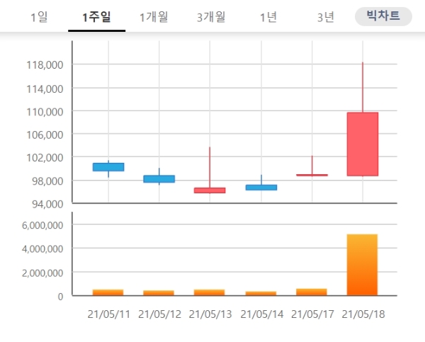 4거래일째 상승으로 가격제한폭까지 오른 상한가다.